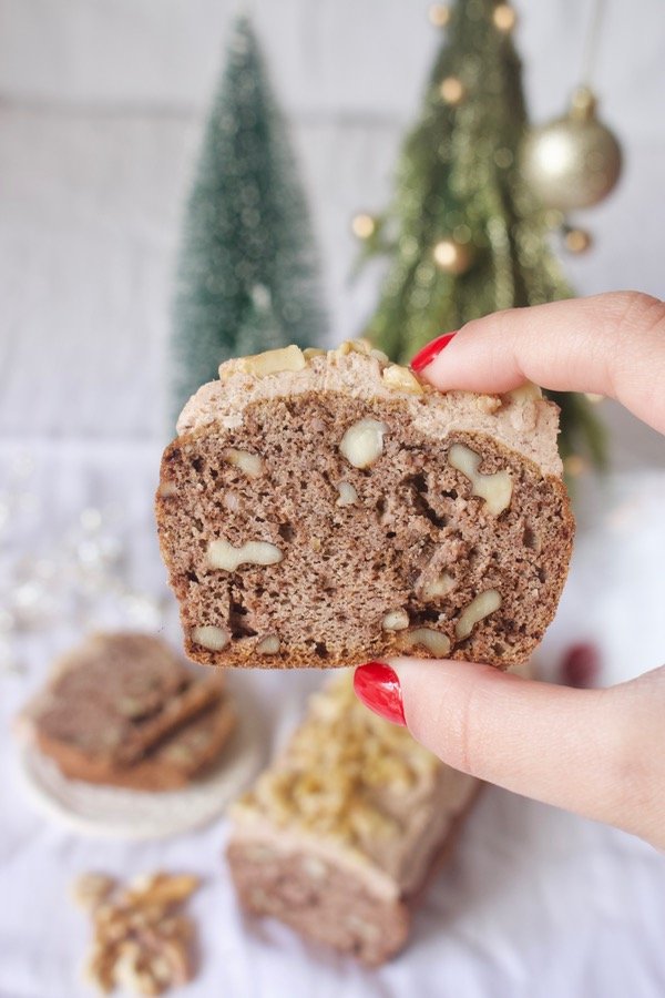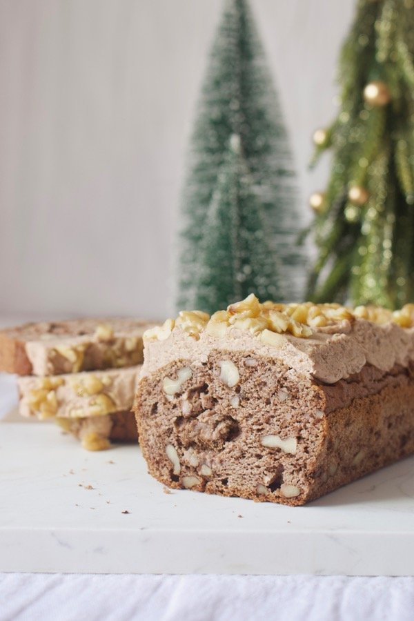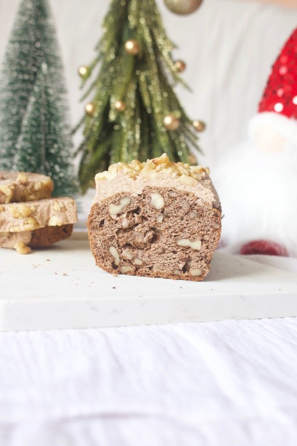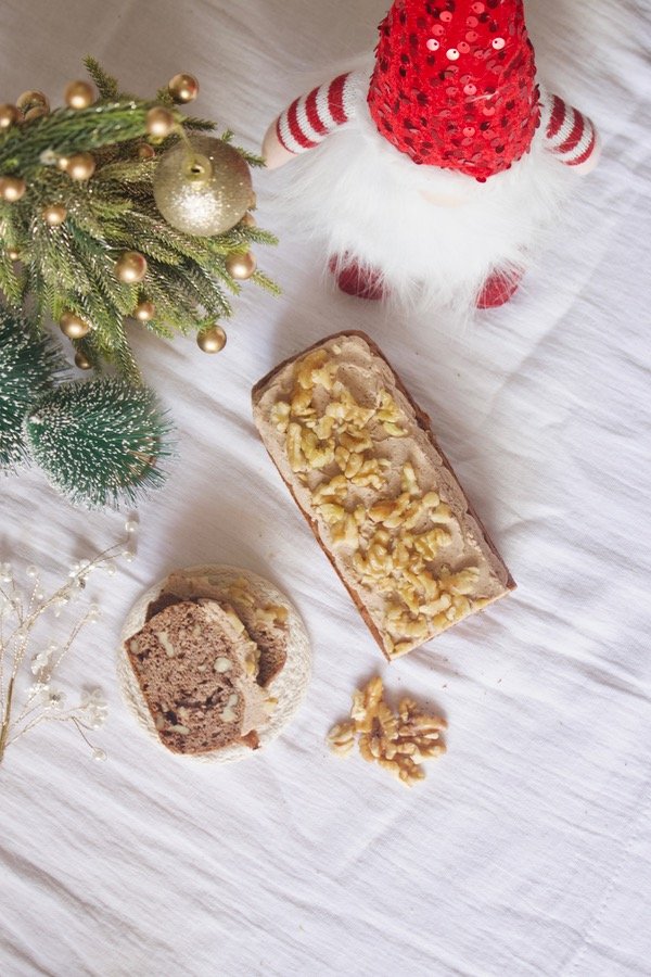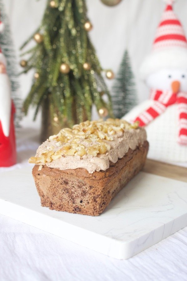 El toque navideño que faltaba. Esponjoso y húmedo, con ese aroma a nuez y canela que automáticamente te transporta a las fiestas. Perfecto para tu mesa dulce navideña. Sin harinas, sin azúcar y con un frosting de queso que es un delirio total 🤤🎄