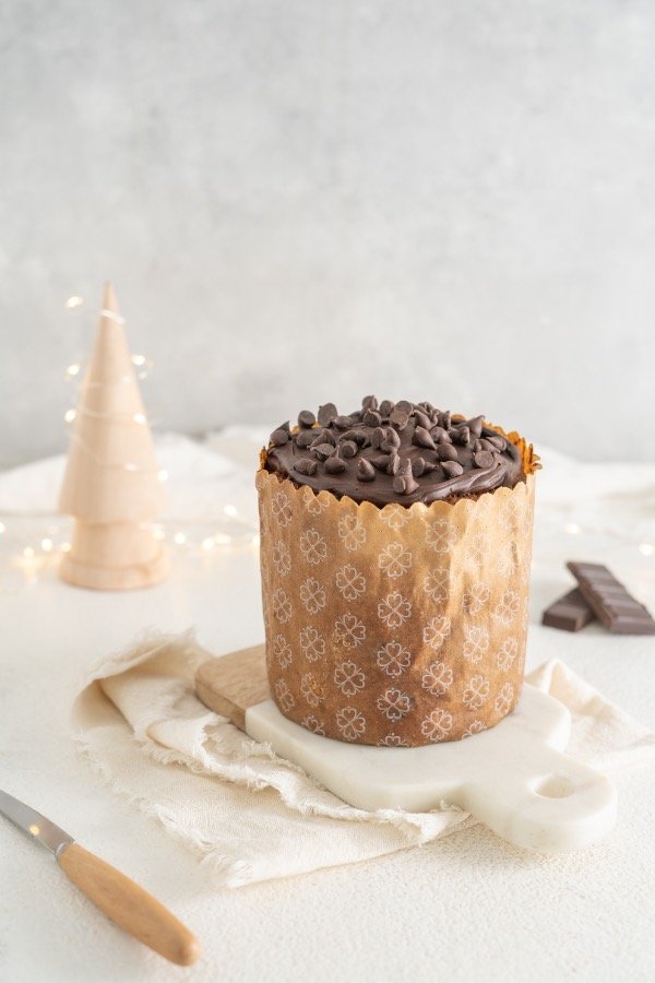 Un pan dulce pensado especialmente para chocolovers. Mega esponjoso y lleno de chips de chocolate 80% que queda increíble. Una opción dulce, simple y rica para festejar sin azúcar y sin harinas.
