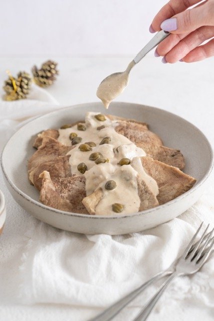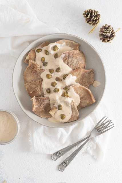 Ingredientes: Peceto, mayonesa, crema de leche, alcaparras, mostaza, sal del Himalaya, pimienta.
